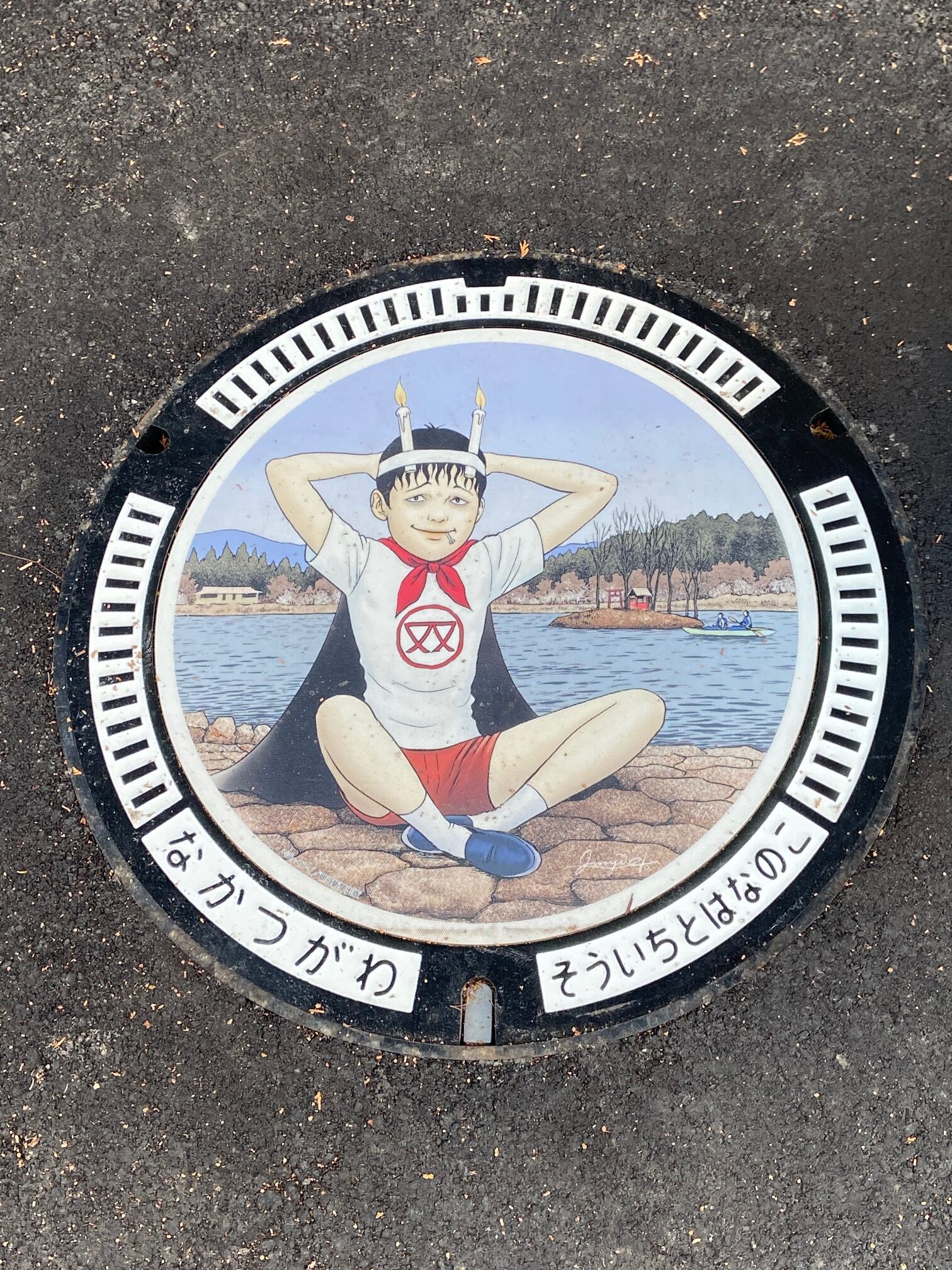 中津川市坂下出身の世界的ホラー漫画家・伊藤潤二さんとのコラボマンホールです。